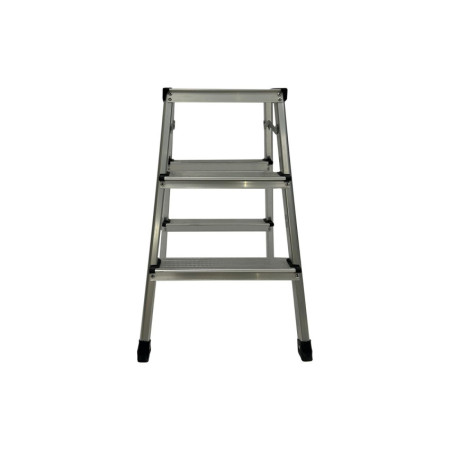 Fabriqué en aluminium, il allie légèreté et résistance pour offrir une structure solide sans être lourde. Les marches sont dotées d'une surface antidérapante qui offre un appui ferme lors de la montée et de la descente, augmentant ainsi la stabilité pendant l'utilisation. Elle intègre également un système de stabilisation qui renforce la base et aide à maintenir l'échelle bien en place sur différents types de sols, réduisant ainsi les oscillations et améliorant le sentiment de sécurité, même en cas d'utilisation répétée.