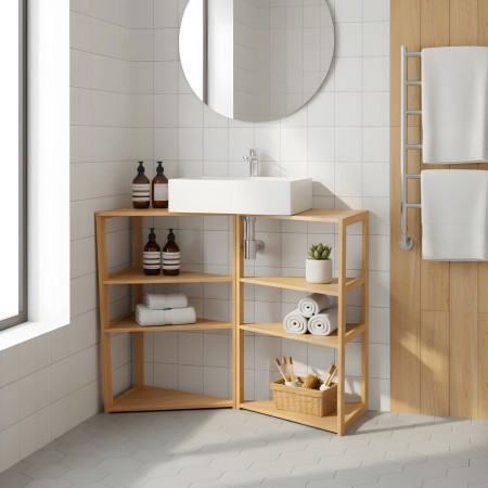 Fabriquées en bambou de haute qualité, ces étagères sont robustes et durables, idéales pour résister à un usage quotidien. Leur conception modulaire offre une grande flexibilité, car vous pouvez les utiliser seules ou les combiner pour créer une étagère plus grande et personnalisée. De plus, en assemblant deux unités, vous pouvez les utiliser comme meuble sous le lavabo, optimisant ainsi l'espace dans votre salle de bains. Avec trois niveaux spacieux chacun, elles sont parfaites pour organiser et présenter des livres, des décorations, des plantes, des articles de toilette ou tout autre objet que vous souhaitez garder rangé et accessible.