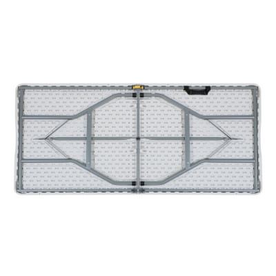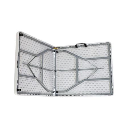 Table pliante rectangulaire portable de Dayron, la solution parfaite pour vos activités intérieures et extérieures. Fabriquée en résine blanche de haute qualité et avec un cadre en acier, cette table allie durabilité et style. Sa conception compacte et légère, associée à une poignée de transport, permet de l'emporter partout, que ce soit pour une réunion de famille, un événement de restauration ou une journée de camping.