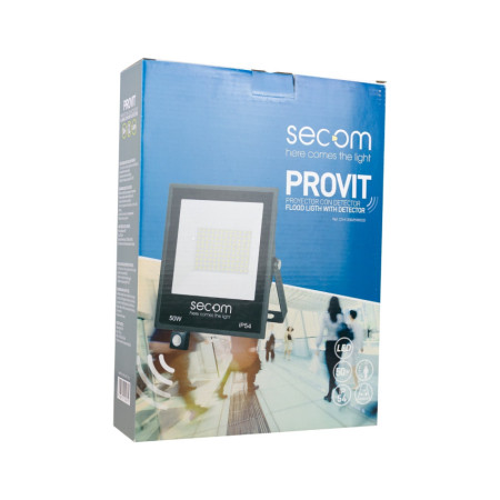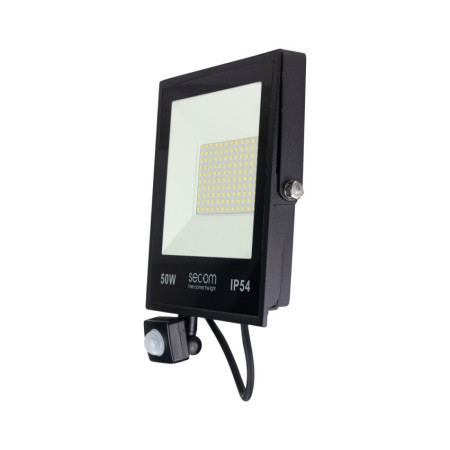 Projecteur LED conçu pour les applications professionnelles qui nécessitent un éclairage efficace avec une activation automatique. Il offre une puissance de 50 W avec un flux lumineux de 5000 lm et une efficacité de 100 lm/W, fournissant un éclairage uniforme et fiable. La température de couleur de 5700 K génère une lumière froide adaptée aux environnements de travail. Sa structure en aluminium et son diffuseur translucide en PC garantissent la résistance et la distribution correcte de la lumière.