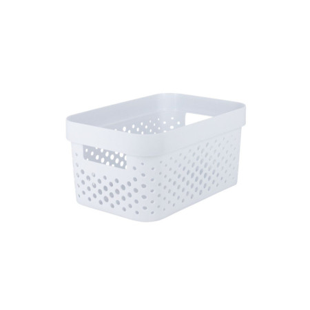 Le panier de rangement Zest de 5,5 litres offre une capacité supérieure qui en fait un outil efficace pour l'organisation des différentes pièces de la maison. Sa conception perforée assure une ventilation constante, adaptée aux produits qui doivent rester aérés, tels que les ustensiles de cuisine, les accessoires de salle de bains ou les textiles légers. Son style simple et moderne lui permet de s'intégrer facilement dans n'importe quel environnement, en apportant de l'ordre sans renoncer à une esthétique équilibrée et propre.