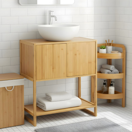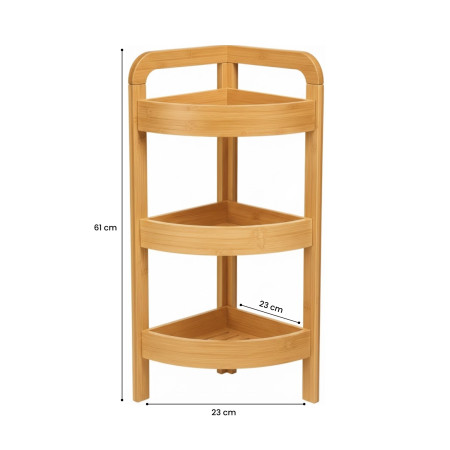 Avec trois niveaux de rangement, cette étagère est parfaite pour organiser vos articles de salle de bain, vos ustensiles de cuisine ou vos accessoires de bureau, en gardant tout en ordre et à portée de main. Sa structure robuste et durable vous permet de ranger une variété d'articles en toute confiance, tandis que son style naturel s'intègre facilement dans n'importe quel décor.