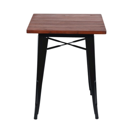 La structure en acier offre une base solide et résistante, prête pour une utilisation fréquente et intensive. Le plateau en bois ajoute une finition chaude et naturelle qui équilibre l'esthétique industrielle de l'ensemble, créant une surface agréable et visuellement attrayante. Cette combinaison permet non seulement d'améliorer l'aspect de l'espace, mais aussi de renforcer la durabilité et la stabilité de la table au quotidien.