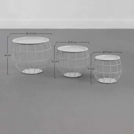 Une véritable icône du style industriel. Ces tables d'appoint sont composées de plateaux ronds en fer qui reposent sur des bases métalliques conçues avec de fines barres entrelacées. Elles sont disponibles en plusieurs couleurs : blanc, noir et gris. Choisissez le ton qui s'harmonise le mieux avec la décoration de votre salon, nous vous assurons qu'elles deviendront le centre d'attention. Laissez libre cours à votre imagination et créez de belles combinaisons grâce à leurs différentes tailles.