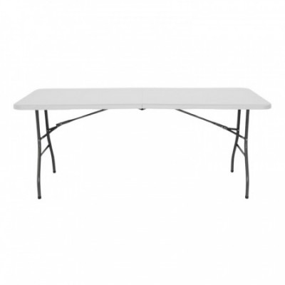 Table pliante rectangulaire portable de Dayron, la solution parfaite pour vos activités intérieures et extérieures. Fabriquée en résine blanche de haute qualité et avec un cadre en acier, cette table allie durabilité et style. Sa conception compacte et légère, associée à une poignée de transport, permet de l'emporter partout, que ce soit pour une réunion de famille, un événement de restauration ou une journée de camping.