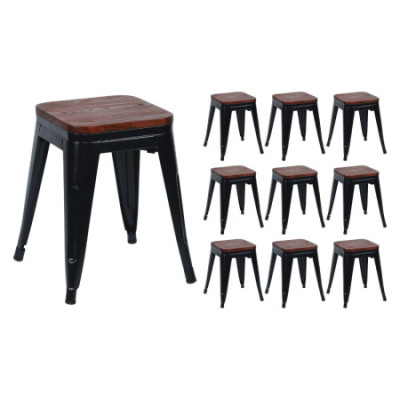 Este pack de 10 taburetes bajos de estilo industrial está pensado para interiores que necesitan asientos compactos, resistentes y versátiles. Su altura los hace adecuados para mesas auxiliares, zonas informales o espacios donde se requiere flexibilidad en la disposición del mobiliario. El diseño combina funcionalidad y estética industrial, aportando carácter sin sobrecargar visualmente el entorno.