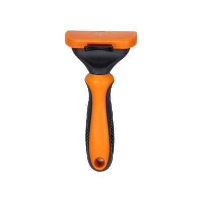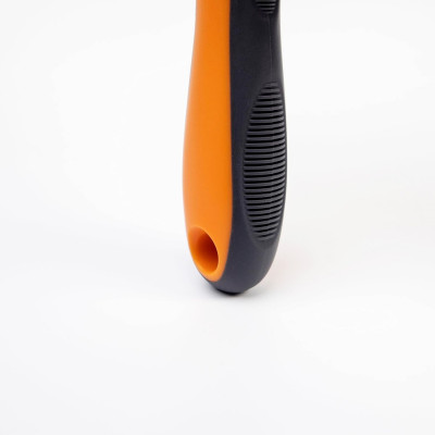 Os dentes finos e uniformes penetram profundamente no subpêlo, removendo os pêlos mortos de forma suave e segura. Também incorpora um prático botão de limpeza que permite que o pelo acumulado seja ejectado com um simples toque, tornando a escovagem mais fácil e mais higiénica. Graças à sua ação de aplanação, evita a formação de nós e promove a ventilação natural da pele, contribuindo para o bem-estar geral do animal e melhorando a experiência de escovagem para ambos.