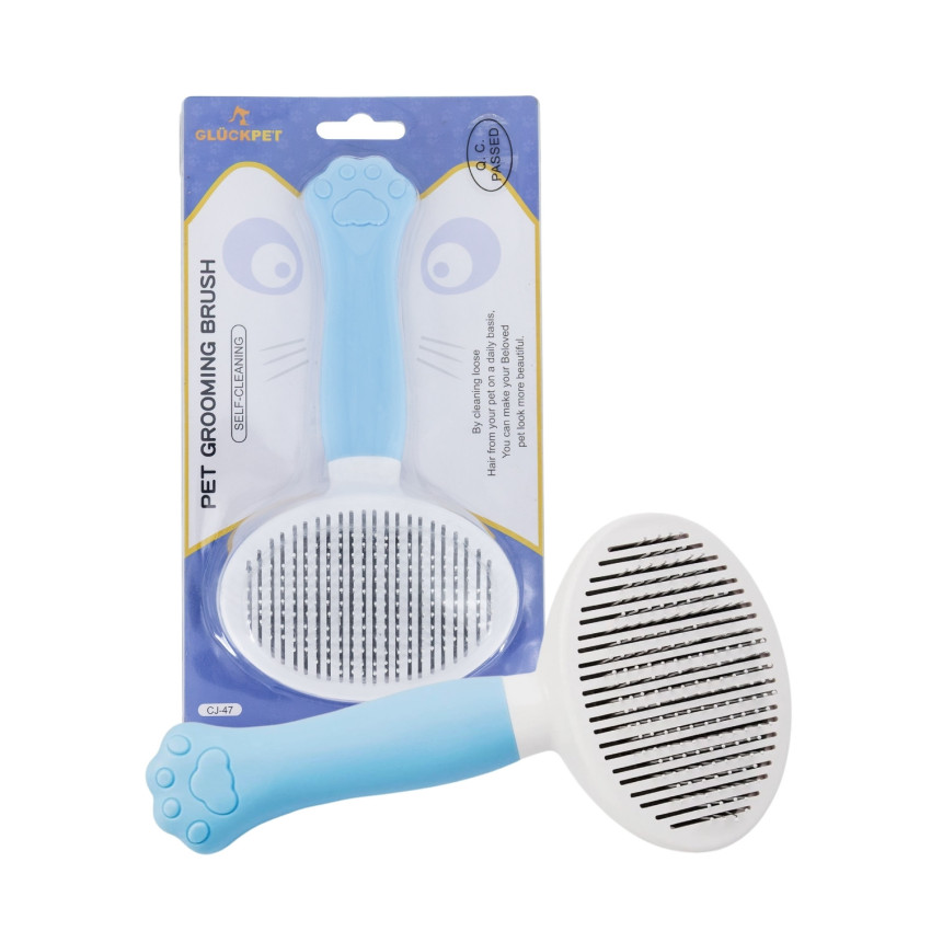 Escova Oval Anti-Emaranhado Autolimpante para Cães e Gatos com Botão de Libertação Glückpet