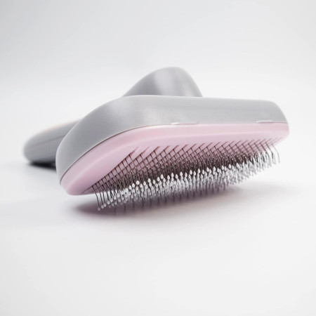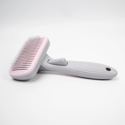 A escova para animais de estimação Glückpet com cabeça de escova retangular é uma ferramenta prática e segura para manter o pelo do seu cão ou gato sempre limpo e tratado. As suas cerdas metálicas em aço inoxidável com pontas arredondadas removem eficazmente os pêlos mortos sem puxar ou irritar, mesmo para animais com pelo espesso ou pele sensível.