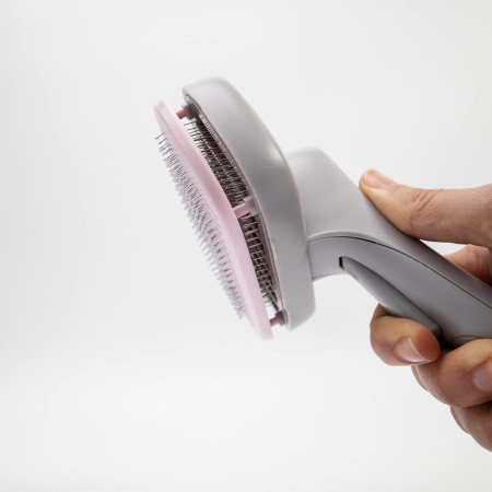 Leve e compacta (19 × 11 × 6 cm), é fácil de manusear, guardar ou transportar. Adequado para cães e gatos de todos os tipos de pelo - curto, médio ou comprido - torna-se um aliado indispensável para reduzir a queda de pelo, evitar os emaranhados e manter a sua casa mais limpa. Com apenas alguns minutos de utilização regular por semana, esta escova melhora a saúde do pelo do seu animal de estimação e torna a rotina de limpeza num momento agradável para ambos.