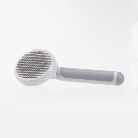 A escova para animais de estimação Glückpet com cabeça redonda é uma solução prática, cómoda e segura para manter o pelo do seu cão ou gato limpo e tratado. O seu design incorpora cerdas metálicas de aço inoxidável com pontas arredondadas, que removem eficazmente os pêlos mortos sem puxar ou irritar, mesmo para animais com pelo espesso ou pele sensível.