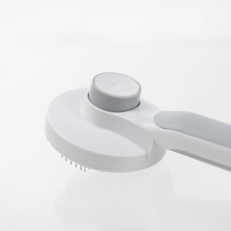 Uma das suas principais vantagens é o sistema de auto-limpeza, integrado na parte superior da escova. Basta premir o botão para libertar instantaneamente o pelo recolhido, sem necessidade de lhe tocar. Esta função acelera a limpeza após cada utilização e ajuda a manter a escova sempre pronta, facilitando a rotina de escovagem.