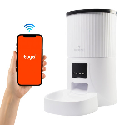 O alimentador automático Glückpet com WiFi foi concebido para que o seu animal de estimação nunca fique sem comida, mesmo quando não está em casa. Ligado à aplicação TUYA, permite-lhe programar horários, porções e gerir a alimentação do seu cão ou gato a partir do seu telemóvel, onde quer que esteja. O seu depósito de 4 litros armazena vários dias de comida seca, ajudando a manter uma rotina estável e ininterrupta.