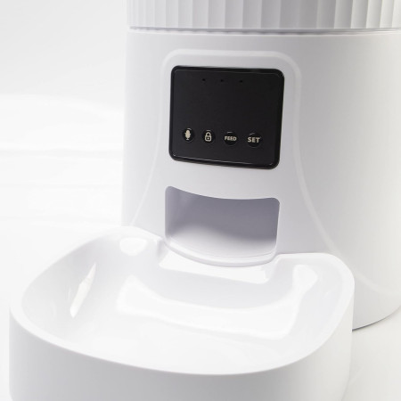 Para além de distribuir automaticamente a comida, este alimentador tem funcionalidades incorporadas que reforçam a sua ligação com o seu animal de estimação. Pode gravar uma mensagem de voz para ser reproduzida quando a comida é servida, fazendo com que o seu animal se sinta acompanhado. O sistema de programação é flexível e personalizável, ideal para ajustar o número de refeições diárias e a quantidade de comida de acordo com as necessidades do seu animal de estimação.