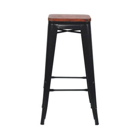 A estrutura metálica garante uma elevada resistência e estabilidade, concebida para uma utilização contínua em ambientes domésticos e profissionais. O assento em madeira oferece uma superfície confortável e visualmente atractiva, criando um contraste elegante com o acabamento industrial do aço. Além disso, incorpora um apoio para os pés que melhora a postura e proporciona maior conforto durante a utilização.