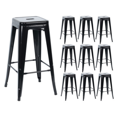 Este conjunto de 10 bancos industriais de altura média destina-se a espaços interiores que exigem um mobiliário robusto e fácil de gerir. O seu design sóbrio e funcional adapta-se a bares, restaurantes e cantinas onde a praticidade é fundamental. A estética industrial confere-lhe uma imagem arrumada e profissional, adequada a ambientes de utilização frequente.