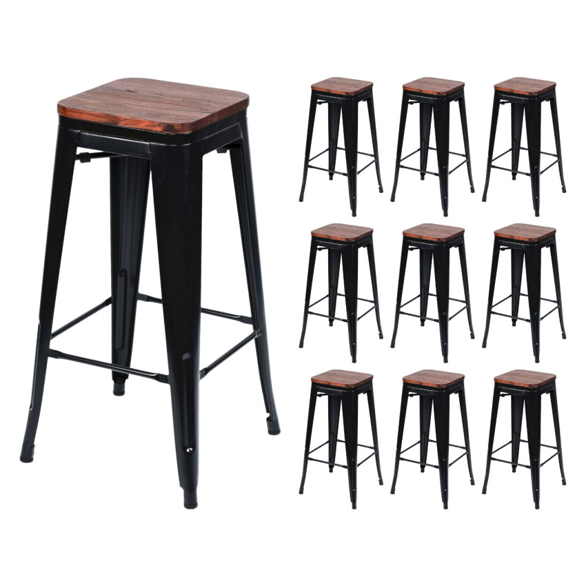 Este pacote de 10 bancos de altura média foi concebido para interiores que procuram um equilíbrio entre conforto, resistência e design industrial. O seu formato torna-os adequados para mesas médias ou áreas polivalentes em bares e restaurantes. O contraste entre os materiais confere personalidade ao espaço sem quebrar a harmonia visual do conjunto.