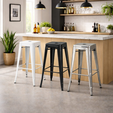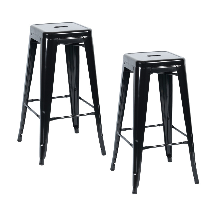 Este conjunto de 2 bancos industriais de altura média destina-se a espaços interiores que exigem um mobiliário robusto e fácil de manusear. O seu design sóbrio e funcional adapta-se a bares, restaurantes e cantinas onde a praticidade é fundamental. A estética industrial confere-lhe uma imagem arrumada e profissional, adequada a ambientes de utilização frequente.