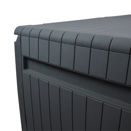 Disponível numa gama de cores, esta arca não é apenas funcional, mas também esteticamente agradável para qualquer ambiente exterior. Tem proteção UV, o que garante que não se desvanece nem se deteriora quando exposta ao sol. Além disso, a sua tampa com fechadura dá-lhe a possibilidade de adicionar um cadeado, permitindo-lhe manter os seus objectos seguros (cadeado não incluído).
