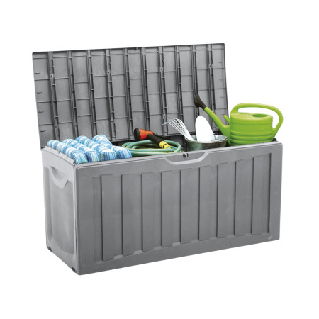 A arca de resina de 340 litros é uma solução prática e eficiente para guardar as suas ferramentas e objectos no exterior. Com uma grande capacidade, pode guardar ferramentas de jardinagem, equipamento desportivo, almofadas e muito mais, assegurando que tudo está sempre à mão e em perfeitas condições. O design robusto e resistente, feito de resina, garante-lhe uma vida longa e proteção contra os elementos.