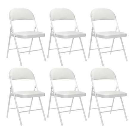 Pack 6 cadeiras dobráveis brancas ou pretas da Thinia home, a solução para os problemas de espaço. Para utilização no interior e no exterior. Graças ao seu design dobrável simples, pode aumentar o número de lugares sentados em segundos quando tiver visitas em casa e poupar espaço de arrumação.