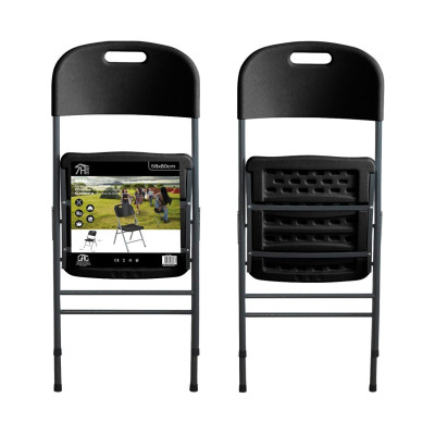 Fabricada em resina e com pernas de aço para maior durabilidade e resistência, pode suportar até 150Kg de peso! Guarde-a em qualquer canto sem ocupar muito espaço e desloque-a sem esforço graças ao seu prático design dobrável. Dispõe de uma pega de transporte.