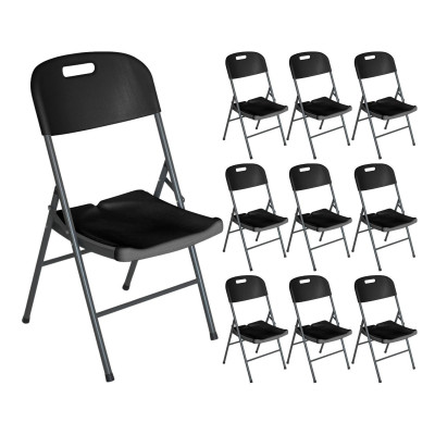 Pacote de 10 cadeiras dobráveis brancas ou pretas com pega da Thinia home, um must-have para a sua casa. Ideal para colocar em espaços pequenos ou para utilizar como assento extra. Adequadas para utilização no interior e no exterior. Utilize-as para acampar, fazer campismo ou piqueniques.