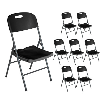 Pack 8 cadeiras dobráveis brancas ou pretas com pega da Thinia home, indispensáveis em casa. Ideal para colocar em pequenos espaços ou para utilizar como assento extra. Adequadas para utilização no interior e no exterior. Utilize-as para acampar, fazer campismo ou piqueniques.