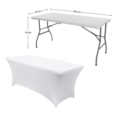 [description] => Conjunto de 2 coberturas de mesa rectangulares dobráveis para catering 150x74cm 7house