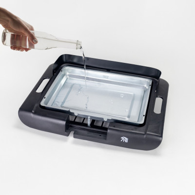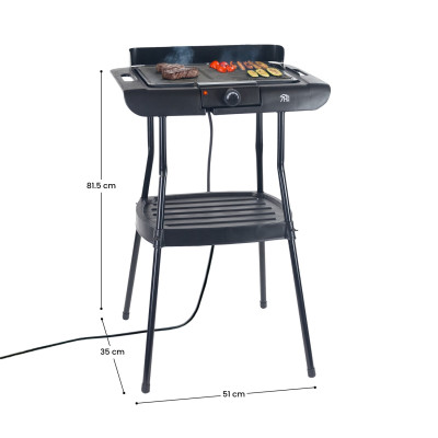 Fabricado em aço esmaltado preto/prateado. O seu design compacto é ideal tanto para o interior como para o exterior, permitindo-lhe desfrutar de um churrasco a qualquer hora e em qualquer lugar. Coloque-o no seu terraço e desfrute de um churrasco sempre que lhe apetecer. O nosso barbecue elétrico EasyGrill tem uma superfície antiaderente de 913 cm² (36,5 x 25 cm) e um regulador de temperatura ajustável, para que possa obter a temperatura perfeita sempre que cozinhar. Reduz os fumos, acabaram-se os vizinhos incómodos e os cheiros indesejáveis em casa graças ao seu design anti-fumo.