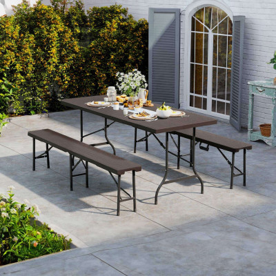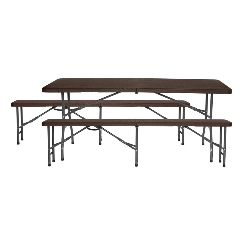 Conjunto exterior rebatível de 180 cm da 7house, a escolha ideal para os amantes dos piqueniques no campo e das viagens de campismo. Também pode ser utilizado em jardins, terraços, alpendres ou terraços de telhado com espaço limitado. Fácil de montar e desmontar.