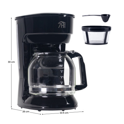 O seu filtro reutilizável e lavável elimina a necessidade de filtros descartáveis, poupando o planeta e a sua carteira. Além disso, esta máquina de café possui uma função de conservação da temperatura para desfrutar do café quente durante mais tempo. A sua placa é capaz de o manter a uma temperatura ideal durante cerca de 9,5 minutos. O seu sistema anti-gotejamento permitir-lhe-á servir o seu café em qualquer altura durante o processo de preparação sem receio de pingar e manchar a sua superfície. Prepara até 12 chávenas de café graças ao seu jarro de 1,8 litros de capacidade. Ideal para receber visitas em casa. Além disso, possui um indicador de nível e uma pega ergonómica anti-queimadura para que possa servir-se comodamente.