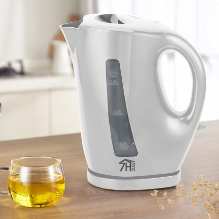 Ideal para fazer chá, café ou chás de ervas quando tem visitas em casa. Também é adequado para preparar qualquer receita que necessite de água quente instantânea. Esta chaleira atinge uma temperatura máxima de 105°C em apenas alguns minutos. O seu design moderno em branco vai integrar-se perfeitamente na sua cozinha. Graças à sua pega ergonómica, pode segurá-la confortavelmente sem receio de se queimar. O seu indicador de nível de água permite-lhe controlar com precisão a quantidade de água desejada. Além disso, possui um sistema de desligamento automático, proteção contra sobreaquecimento, luz indicadora e base antiderrapante para garantir uma utilização 100% segura.