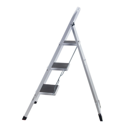 Fabricado em alumínio, combina leveza e resistência, facilitando o seu transporte entre as diferentes divisões da casa. A sua estrutura foi concebida para oferecer uma boa estabilidade durante a utilização, proporcionando uma sensação de segurança ao subir e descer. Os degraus têm uma superfície antiderrapante que melhora a aderência dos pés, enquanto a base estabilizadora ajuda a manter a escada firme no chão durante a utilização.