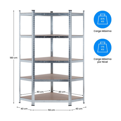 Estante modular de canto com 5 prateleiras reguláveis da 7house, um móvel de arrumação adequado tanto para uso doméstico como profissional. Perfeito para colocar e organizar em oficinas, armazéns, arrecadações, garagens e lojas.