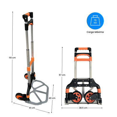 Ideal para uso doméstico e profissional, este carrinho é indispensável em qualquer oficina, armazém ou loja para transportar o que precisa, onde precisa. Equipe-se com este carrinho dobrável de 70 kg e mova caixas, móveis, sacos e outras cargas com o mínimo esforço.