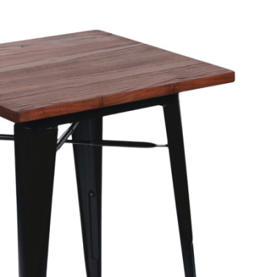 A estrutura em aço oferece uma base sólida e resistente, pronta para uma utilização frequente e intensiva. O tampo de madeira acrescenta um acabamento quente e natural que equilibra a estética industrial do conjunto, criando uma superfície agradável e visualmente atractiva. Esta combinação não só melhora o aspeto do espaço, como também reforça a durabilidade e a estabilidade da mesa no uso quotidiano.