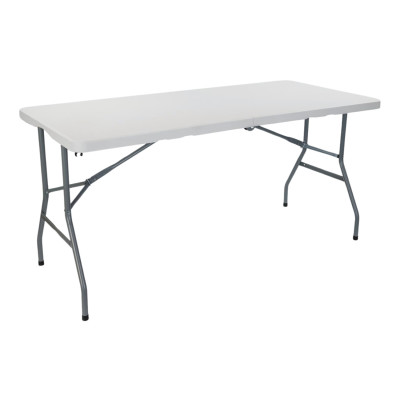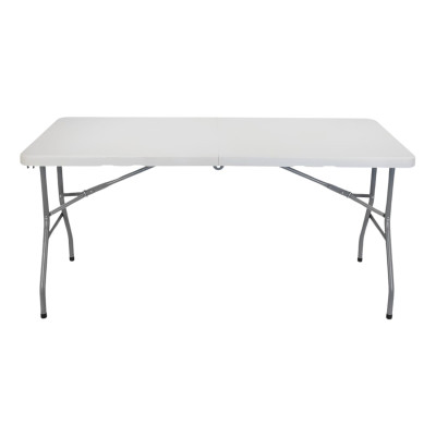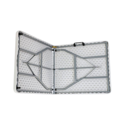 Mesa dobrável portátil retangular da Dayron, a solução perfeita para as suas actividades no interior e no exterior. Fabricada em resina branca de alta qualidade e com uma estrutura em aço, esta mesa combina durabilidade e estilo. O seu design compacto e leve, juntamente com uma pega de transporte, torna-a fácil de levar para qualquer lugar, quer se trate de uma reunião familiar, de um evento de restauração ou de um dia de campismo.