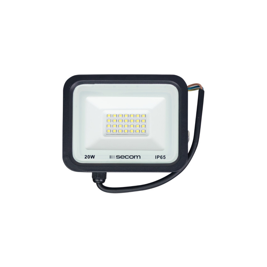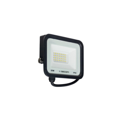 Projetor LED de 20W com um fluxo luminoso de 1600 lm, concebido para iluminação exterior em aplicações profissionais que exijam um nível de iluminação uniforme e eficiente. Incorpora tecnologia LED SMD e emite luz fria de 5700K com índice de restituição de cor ≥80, proporcionando uma iluminação clara e definida. O seu ângulo de abertura de 120° permite-lhe cobrir grandes superfícies com uma distribuição homogénea da luz. Funciona a 50 Hz com uma tensão de entrada de 100-240 V.