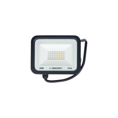 Projetor LED de 20W com um fluxo luminoso de 1600 lm, concebido para aplicações profissionais que requerem uma iluminação exterior eficiente e uniforme. Incorpora tecnologia LED SMD e emite luz fria de 6000 K com índice de restituição de cor ≥80, proporcionando uma iluminação clara com boa perceção de cor. O seu ângulo de abertura de 120° permite-lhe cobrir grandes superfícies com uma distribuição homogénea da luz. Funciona a 50 Hz com uma tensão de entrada de 100-240 V.